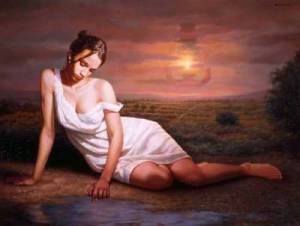 horizonte. Besos de ajenjo, pies con destino al paraíso, incierta presencia de mis sueños. Agua del aljibe, pozo y manantial, dueña del pecado y su perdón.