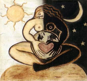 Diosa de la luna y madre de la tierra. Mujer hecha labios, palabra, susurro, caricia, panal de miel, aceite que suaviza la piel del