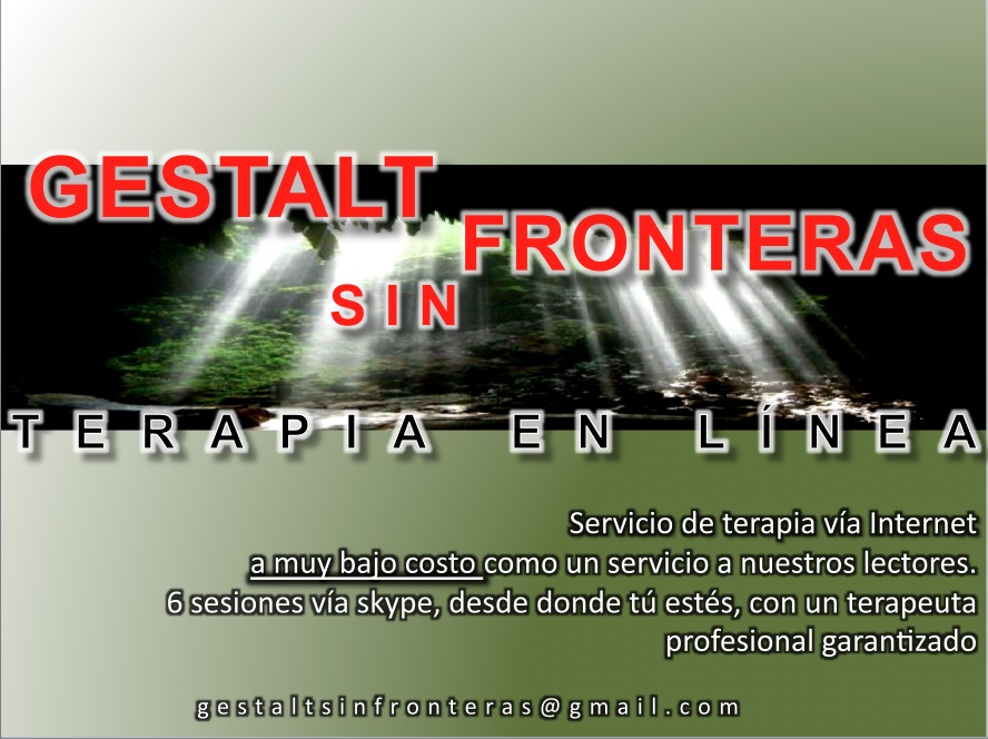 Si tú realmente estás interesado en recibir algunas sesiones de terapia gestalt por línea (y, en algunos casos de manera presencial), y realmente no tienes la posibilidad de pagar por tu proceso, acércate a nosotros y con todo gusto haremos todo lo que esté en nuestras manos para que alguien del equipo de Gestalt Sin Fronteras, te ofrezca su apoyo cobrándote relativamente poco, por un número específico de sesiones.