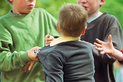 El grupo de chicos ríe mientras siguen coreando entre todos sus burlas. Luis se siente sólo, humillado, avergonzado, pero no puede hacer nada,  su única salida es darse la vuelta y alejarse mientras los demás se siguen divirtiendo a sus costillas.