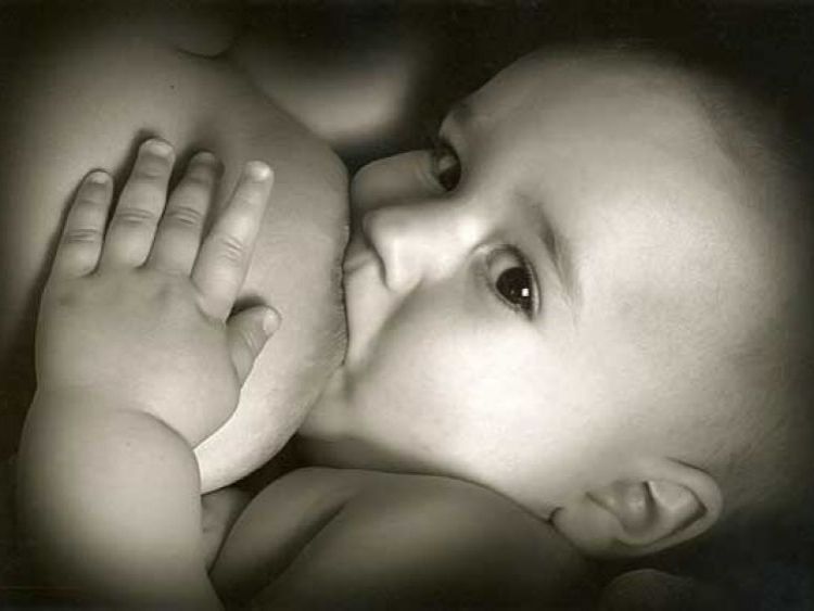 El niño, sin enterarse más que en comer,  busca el seno de Carmela y empieza a alimentarse de él.