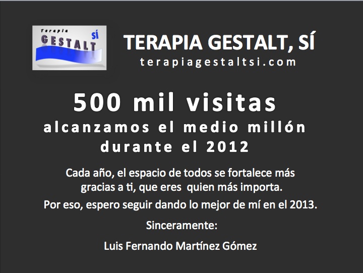 500 MIL GRACIAS por acompañarme durante estos dos años de existencia de TERAPIA GESTALT, SÍ.