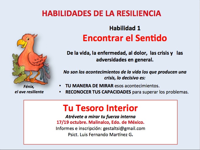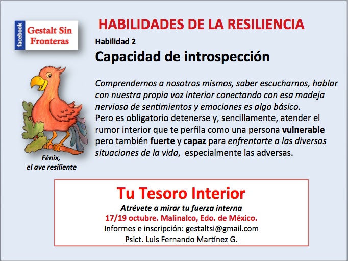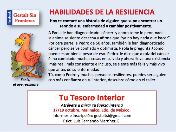 Publicidad taller TESORO INTERIOR: Resiliencia y Mindfulness.
