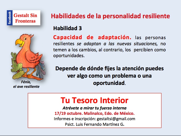 Resiliencia es: la capacidad para enfrentar las adversidades y salir fortalecido de ellas.