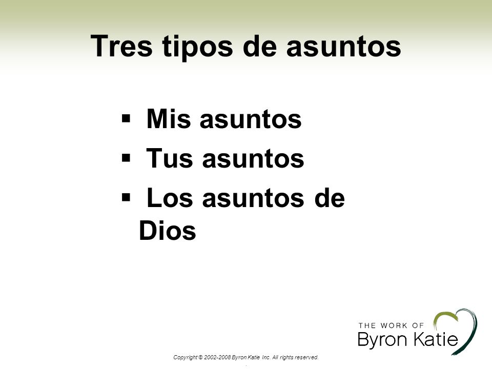 byronkatie1La autora Katie Byron en su libro Amar lo que es, nos explica que hay tres tipos de asuntos en la vida: