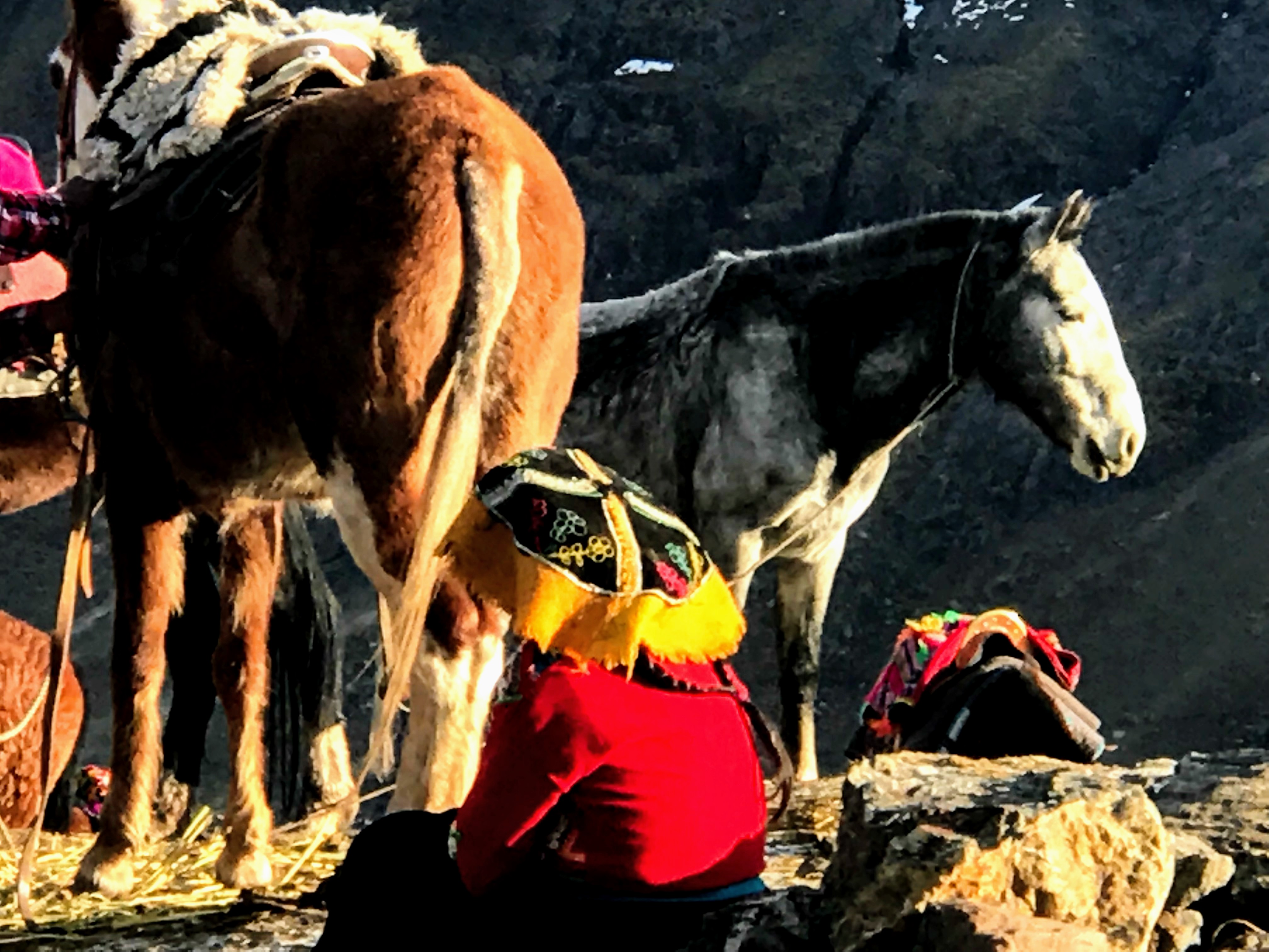 Yo me sentía un tanto preocupado por mi condición física, pues los días anteriores había padecido el llamado mal de montaña por la altura de las ciudades en las que habíamos estado lo que me había provocado dolor de cabeza y en el pecho, taquicardia y dificultad para respirar. Le pregunté al guía que si había la posibilidad de efectuar el recorrido a caballo. Él me dijo que sí pero que la intención del paseo era vivir la experiencia a pie. Me sugirió que intentara hacerlo, después de todo, me dijo: «el objetivo no era llegar primero sino disfrutar del paisaje y de la experiencia». Sus palabras me motivaron y estuve de acuerdo considerando que, en caso de que me sintiera muy mal, siempre existía la posibilidad de alquilar uno de los caballos que ofrecían los habitantes de la montaña.