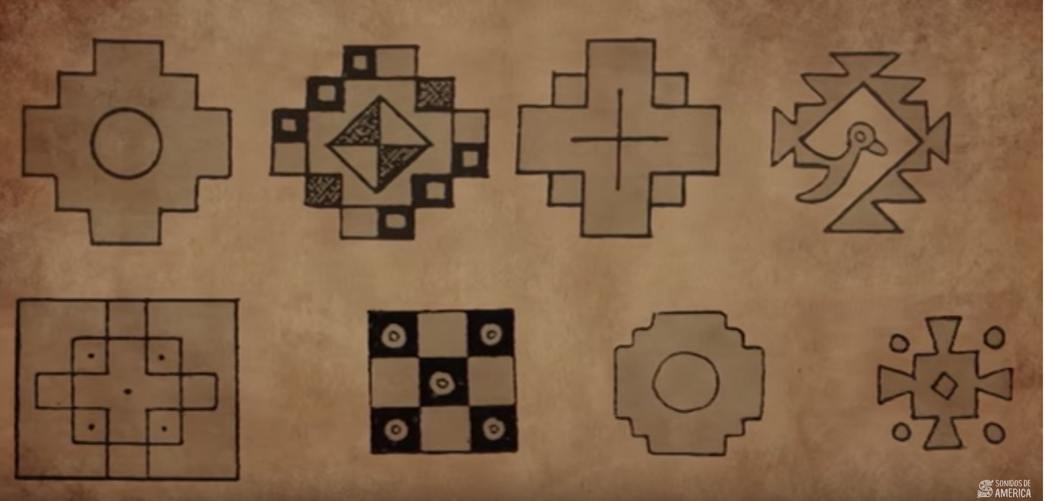 Cruz Andina o "Chacana". Diferentes presentaciones.