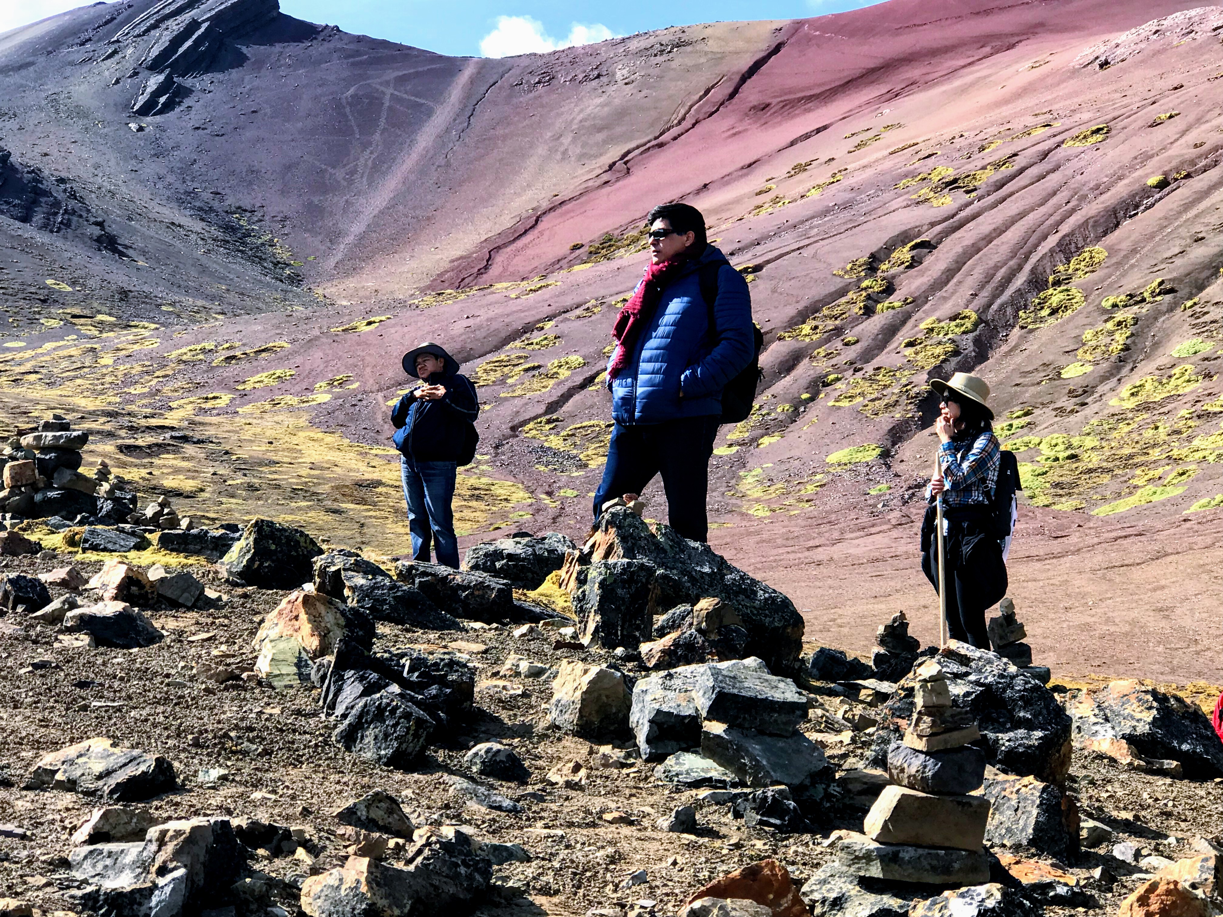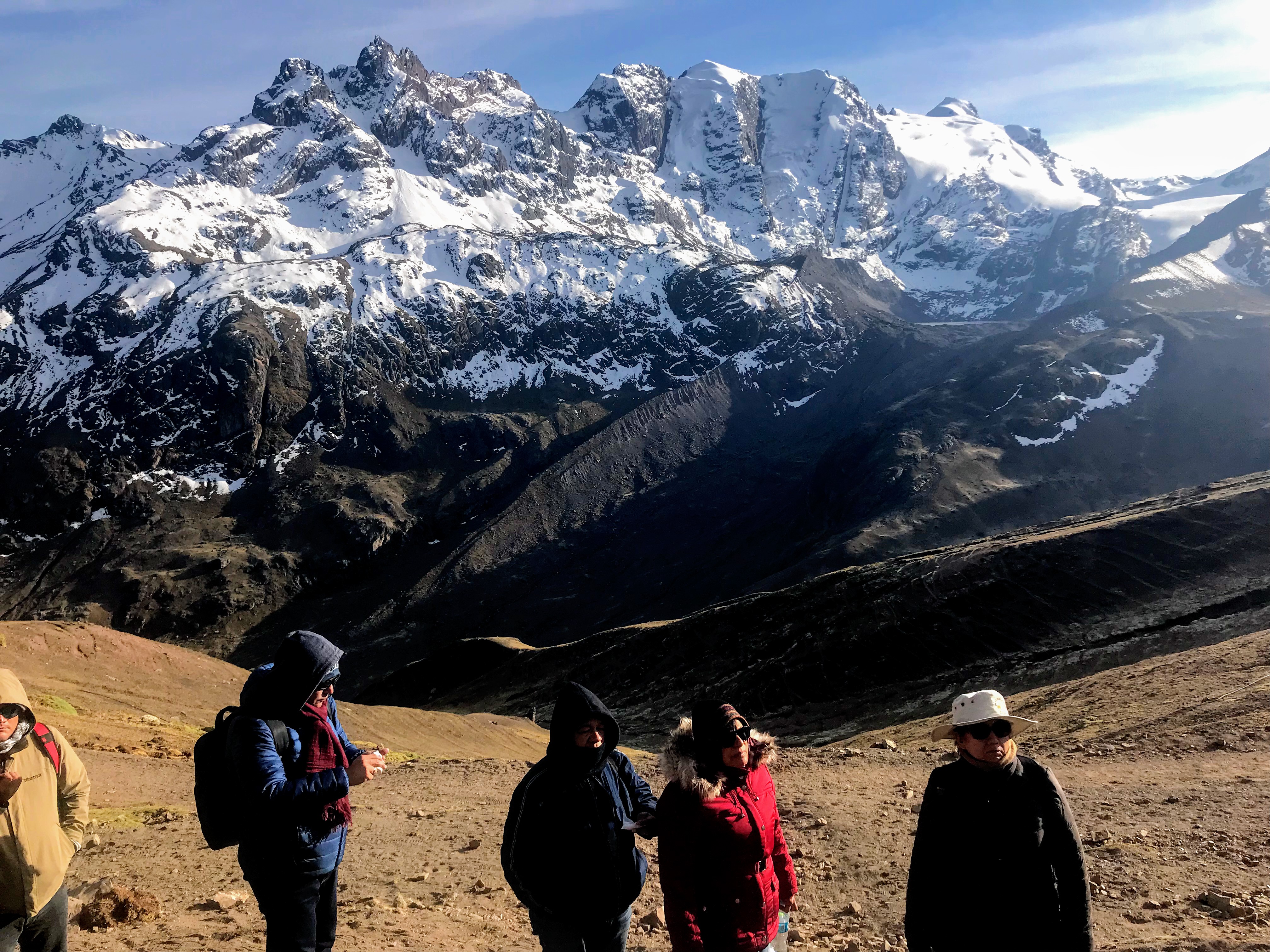 Ismael, que era como se llamaba nuestro joven guía, cada cierto tiempo nos pedía que nos detuviéramos para que descansáramos y recuperáramos el aire, pues en la medida que estábamos a mayor altura más complicado era poder inhalar. Mientras nos recuperábamos podíamos disfrutar del hermoso paisaje montañoso que nos envolvía e Ismael aprovechaba para comentarnos acerca de los habitantes de la montaña, sus costumbres, sus rituales y otros asuntos de interés sobre la Comunidad Andina compuesta por Bolivia, Colombia, Ecuador y Perú. Todos lo escuchábamos atentamente mientras disfrutábamos de las maravillosas vistas; a un lado teníamos a los Andes nevados y al otro se empezaba a vislumbrar la magnífica Montaña de los Siete Colores.
