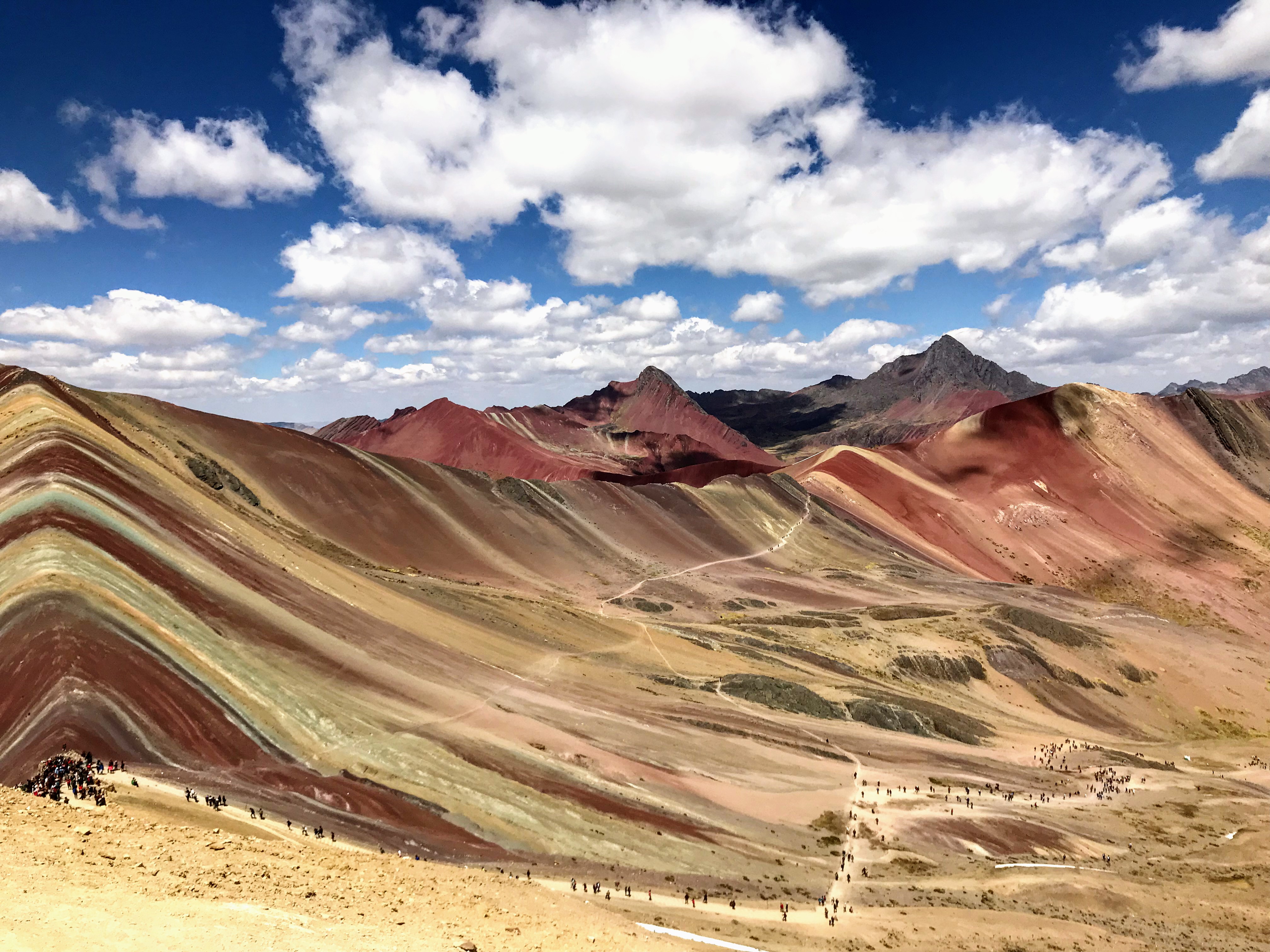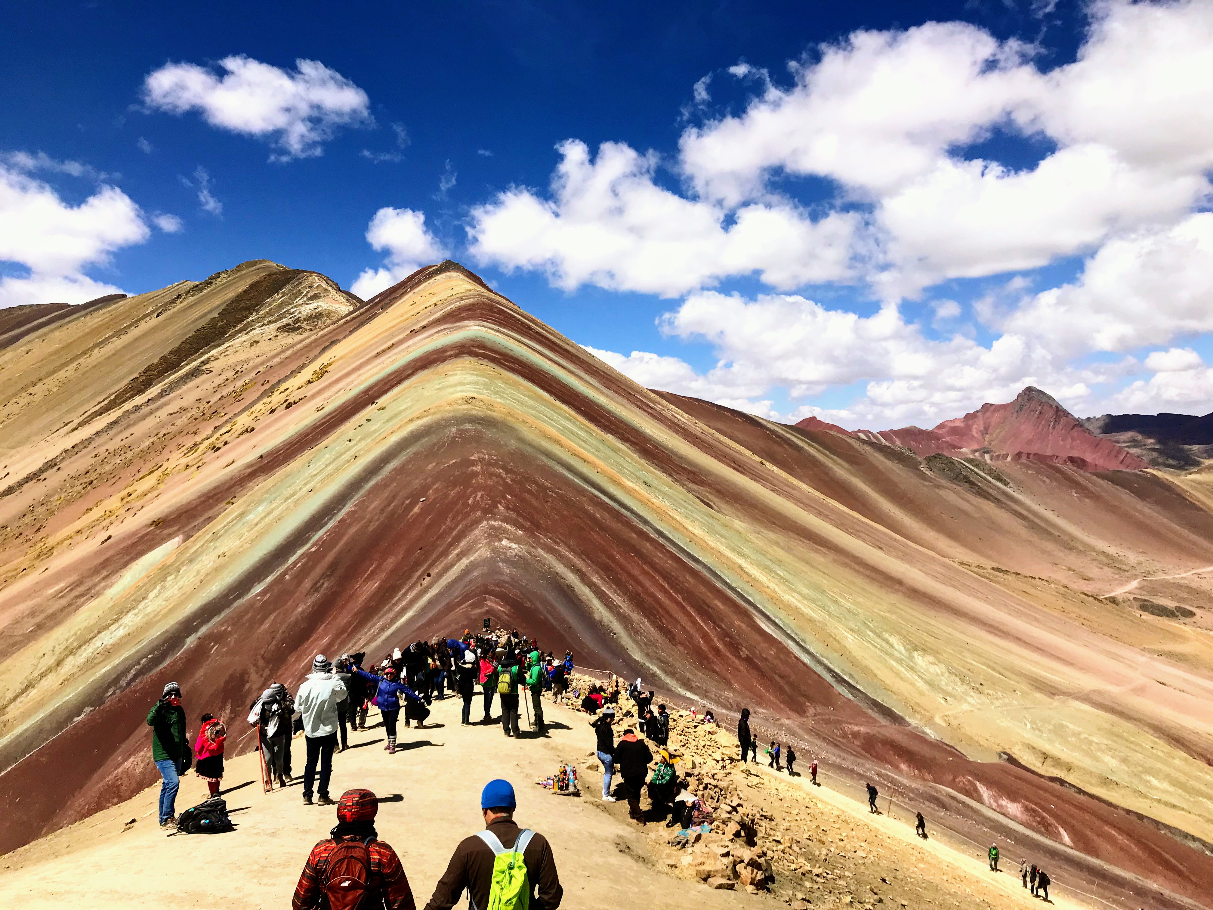 A unos 100 kilómetros al sureste de Cusco, Perú, existe un arcoíris hecho montaña. Se trata de la Montaña de los Siete Colores, también conocida como Arcoíris y se localiza en la Cordillera del Vilcanota a 5.200 metros sobre el nivel del mar, en el Distrito de Pitumarca. Sus laderas y cumbres están teñidas por unas franjas de intensos tonos de fucsia, turquesa, lavanda y dorado.