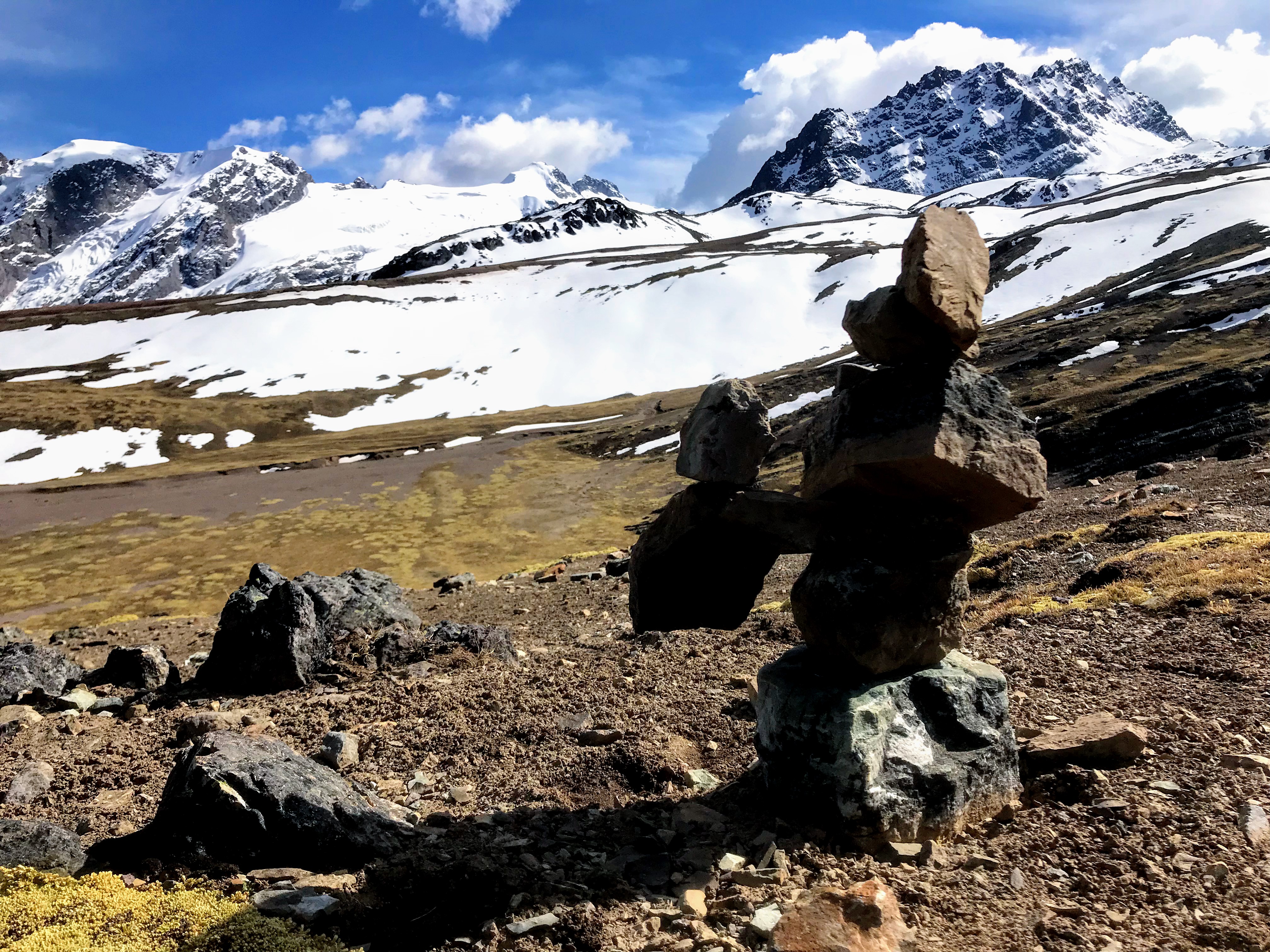 Continuamos el recorrido y, mientras más ascendíamos, las molestias por la altura se empezaban a presentar. Como apoyo para resistir las sensaciones de falta de aire, muchos de nosotros mascábamos hojas de coca o disolvíamos caramelos también de coca en la boca. Otros más intentaban recuperar la energía comiendo barras de chocolate. Como bien había dicho Ismael, el ascenso de la montaña implicaba tanto esfuerzo que incluso nos olvidábamos de beber agua. En una de las pausas durante el recorrido, nos pidió que tomáramos una piedra no muy grande, que pudiéramos cargar con facilidad. En ese momento no nos dijo más, pero nos comentó que, más adelante nos diría cuál era la razón de lo que nos estaba pidiendo.