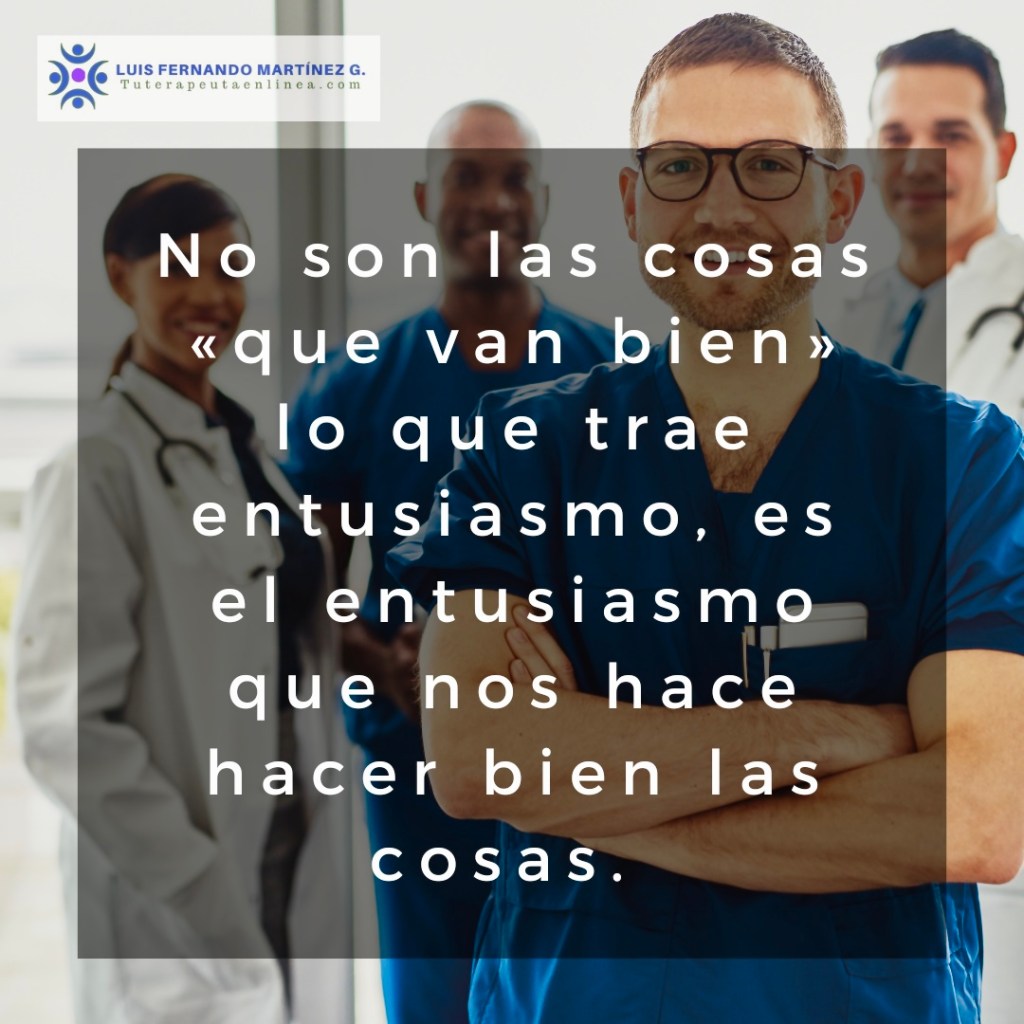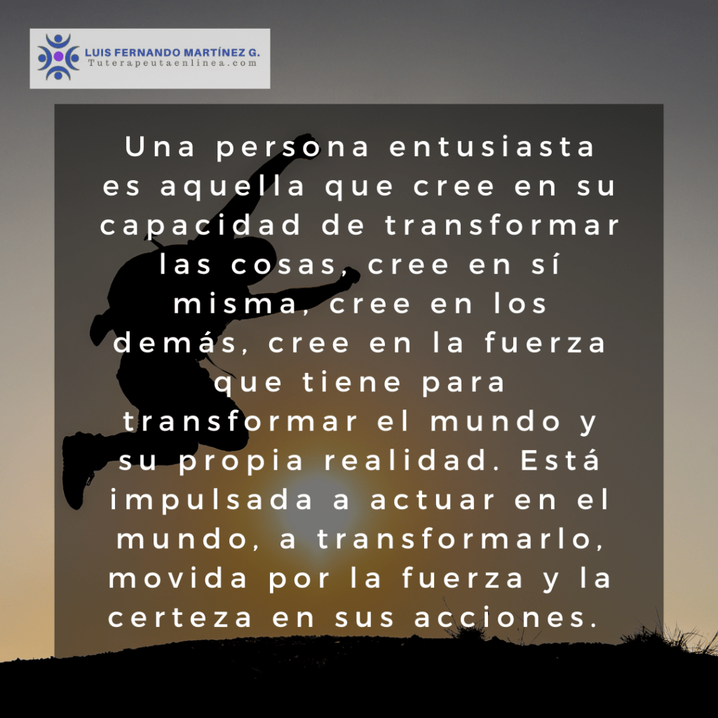 Hay quienes que se quedan esperando que las condiciones mejoren, que llegue el éxito, que mejore su trabajo, que mejore su relación de pareja o de familia para luego entusiasmarse, la verdad es que jamás se entusiasmarán por algo.