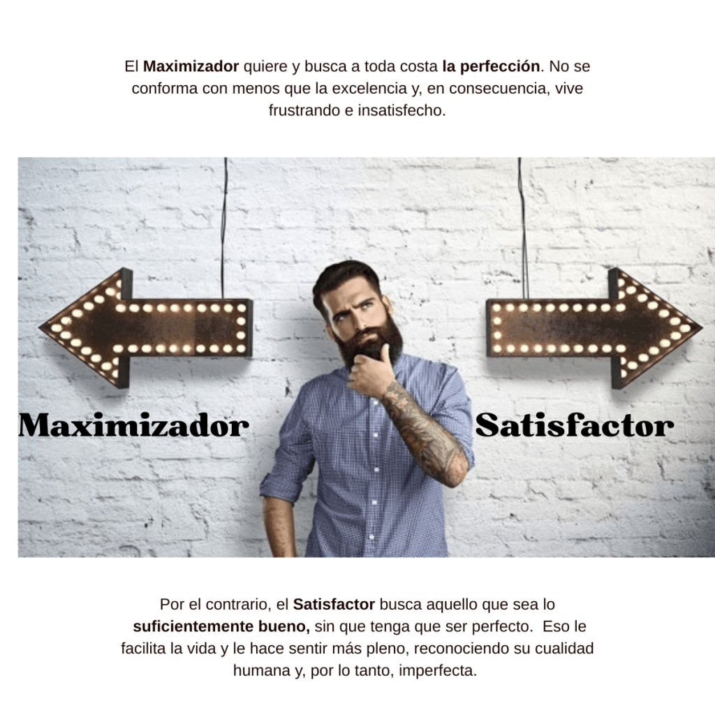 En la psicología de la toma de decisiones se distinguen dos tipos de personas: los maximizadores y los satisfactores.